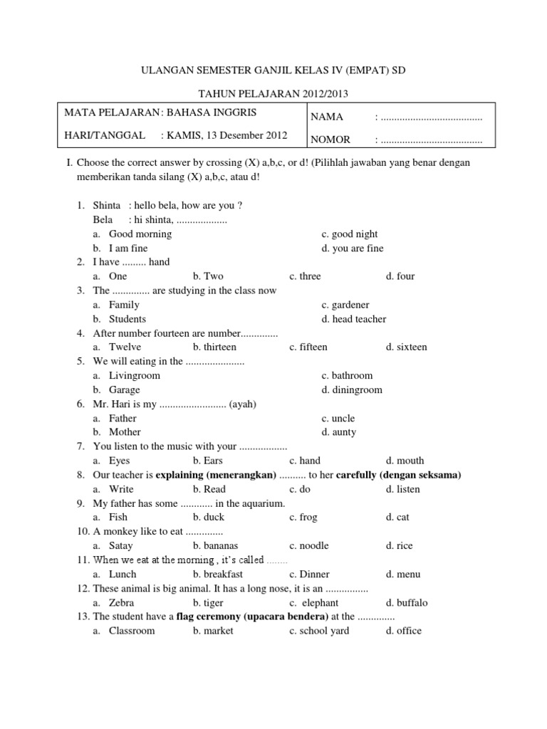 Kumpulan Soal Bahasa Inggris 50 Grammar. Semaga artikel tentang 50 soal bahasa inggris. Her step mother and her step sister named bawang merah. Belajar bahasa inggris tidak lepas dari yang dinamakan grammar, pada kesempatan kali ini ibi akan mmembagikan coontoh soal grammar essay. Chose the correct word to complete the sentencce. Selain itu, akan diberikan juga contoh kalimat pada setiap. (apa yang akan kamu lakukan sekarang?) 49. Soal terdiri dari 50 nomor pilihan ganda, dilengkapi kunci jawaban dan dapat didownload secara gratis dalam bentuk file pdf.